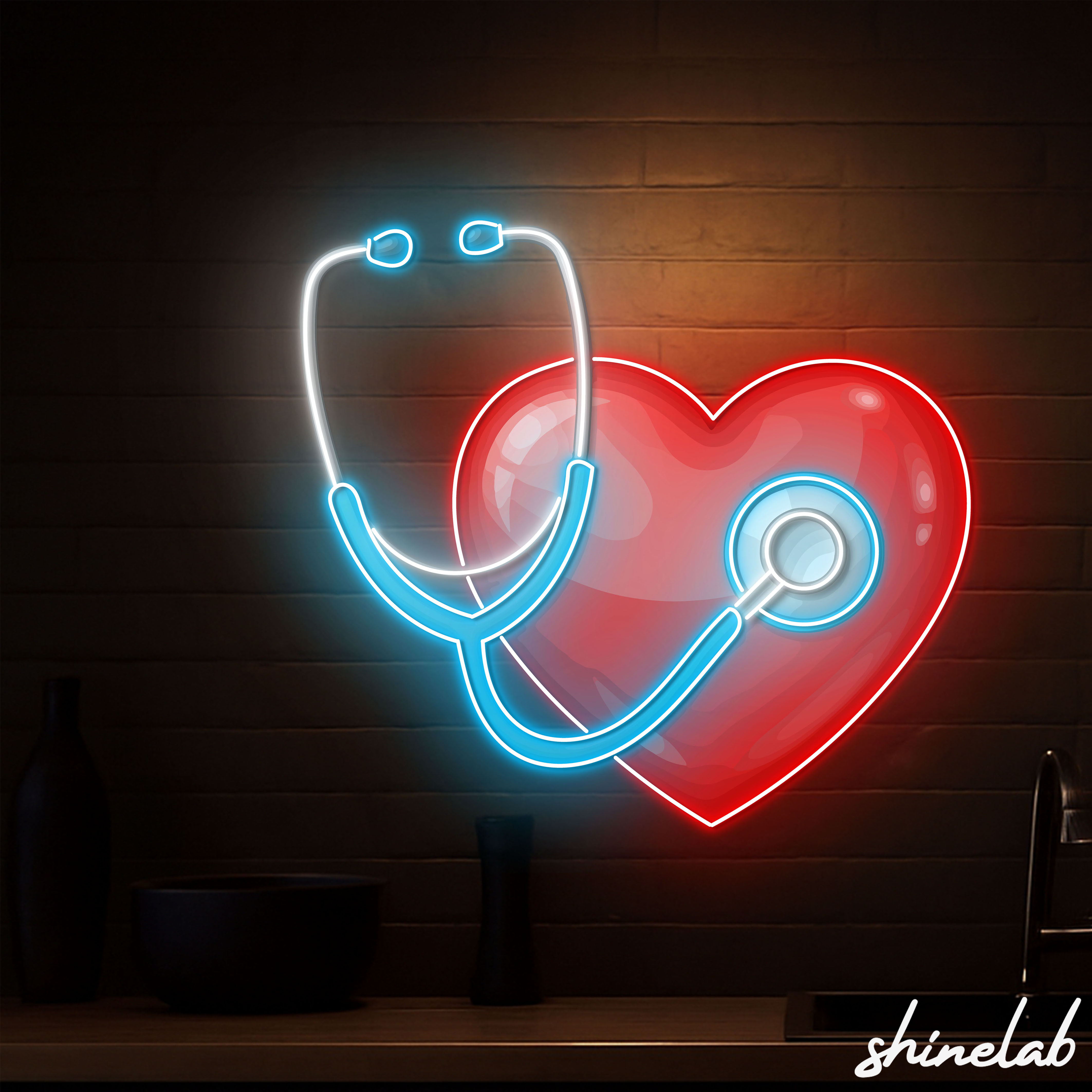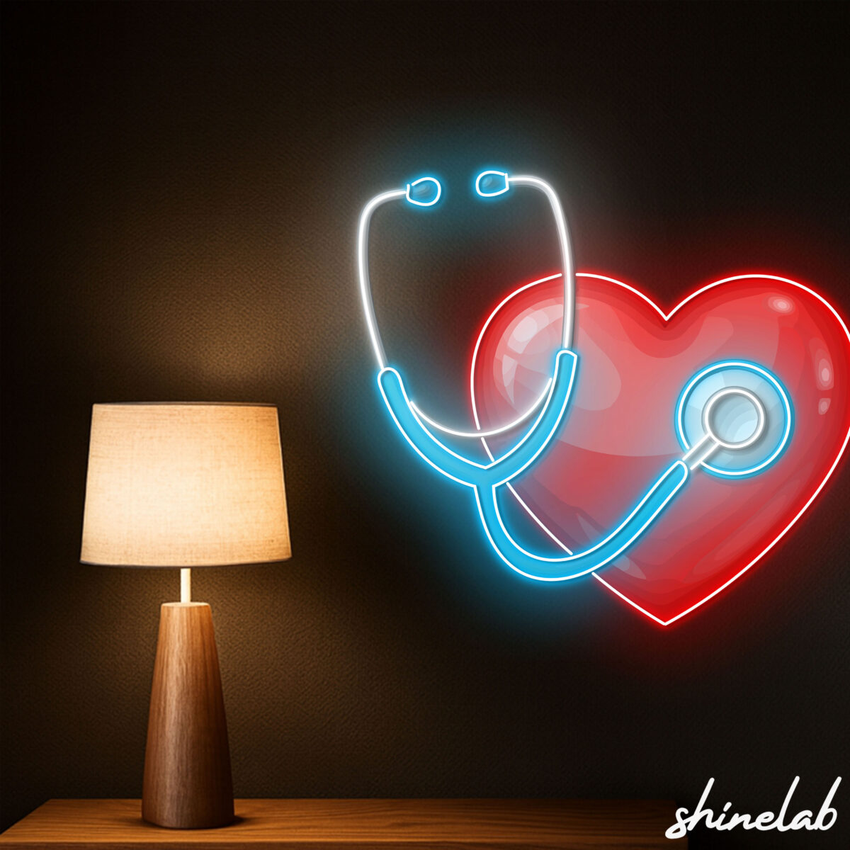 Shinelab Heartbeat Stethoscope Neon Sign, Doctor Nurse Gift, Medical Office LED Wall Art