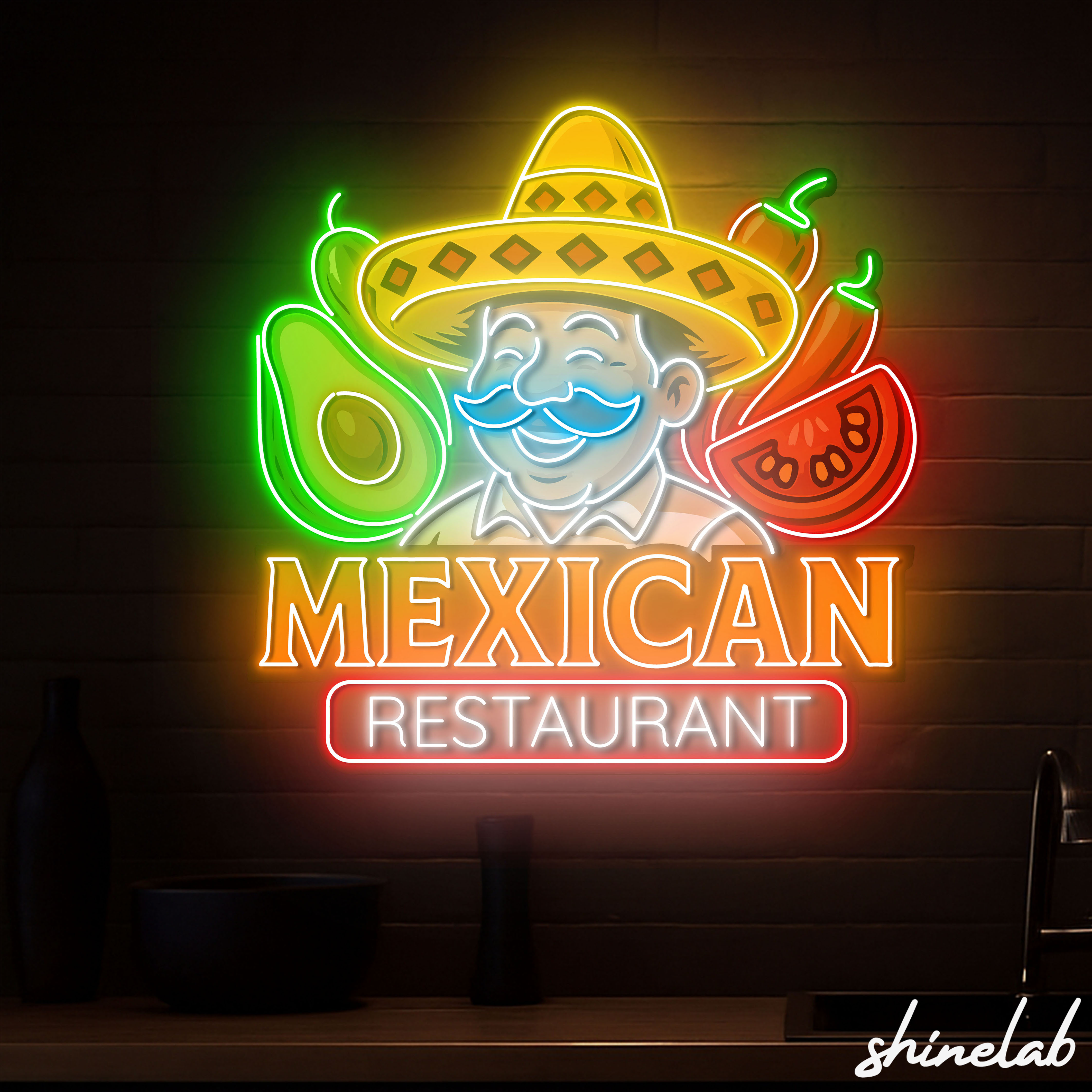 Shinelab Mexican Restaurant Neon Sign, Sombrero and Avocado Decor, Taco Shop LED Wall Art