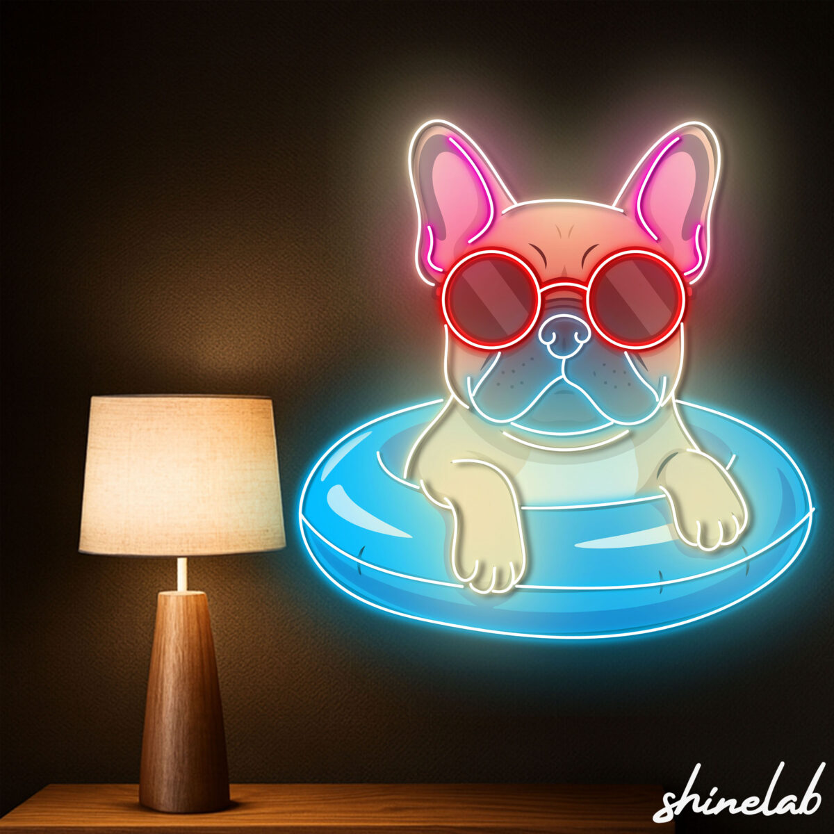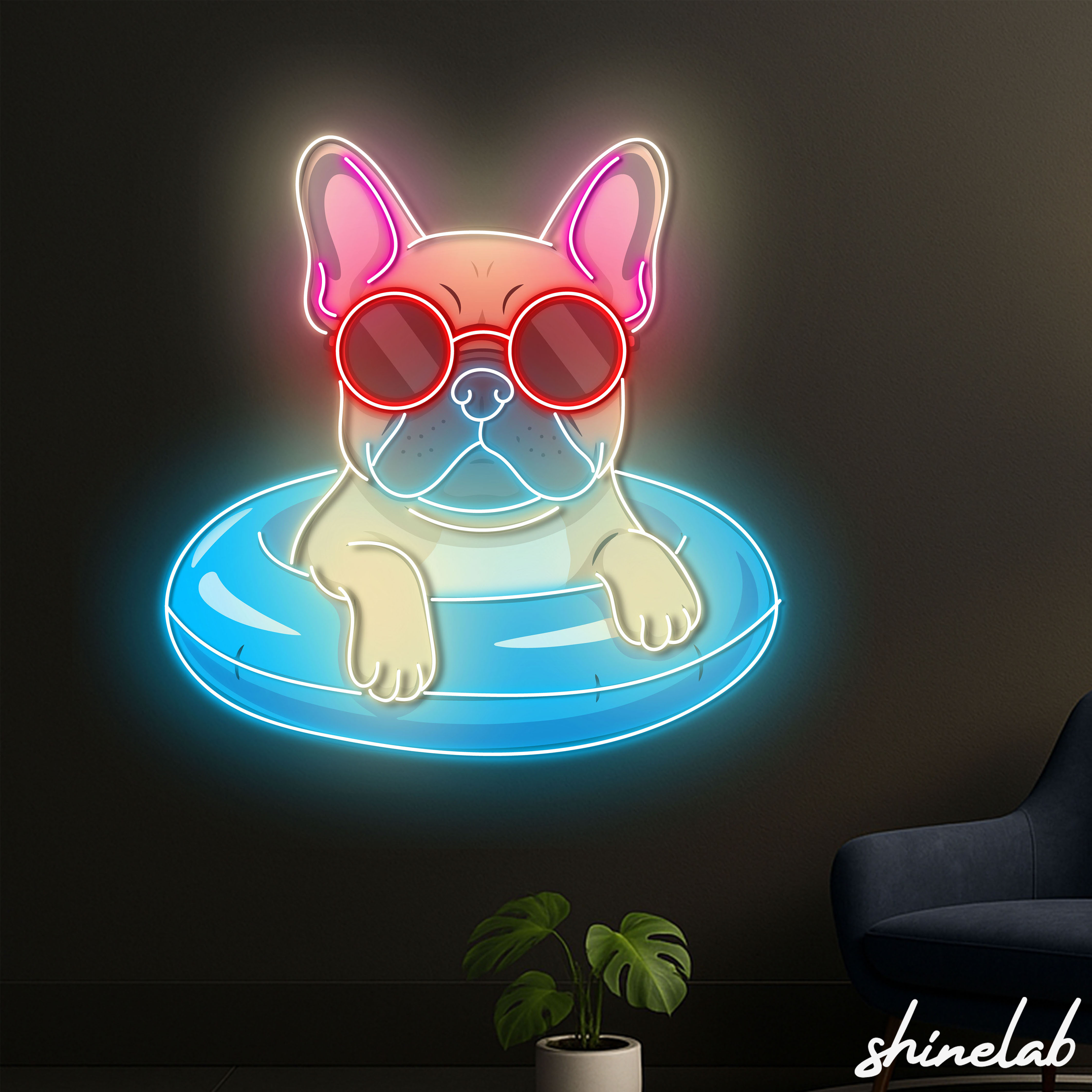 Shinelab French Bulldog on Float Neon Sign, Dog Lover Gift, Pet Shop Wall Decor, Cute LED
