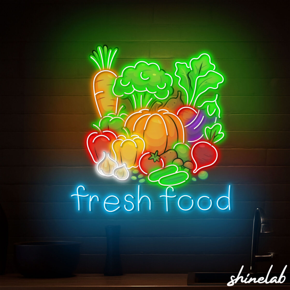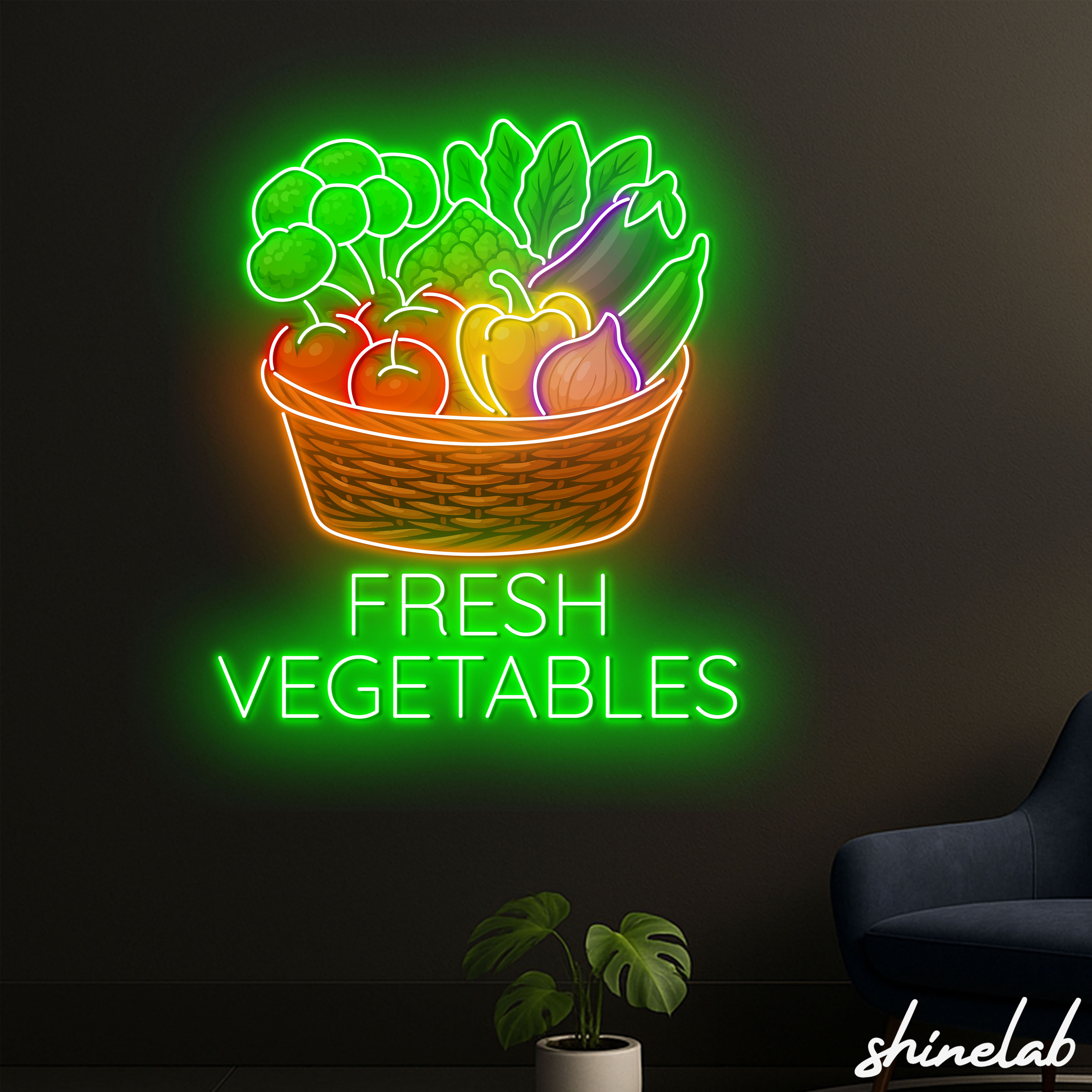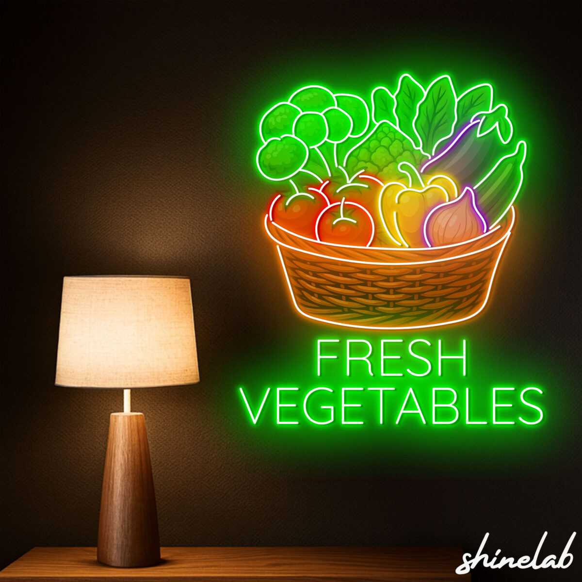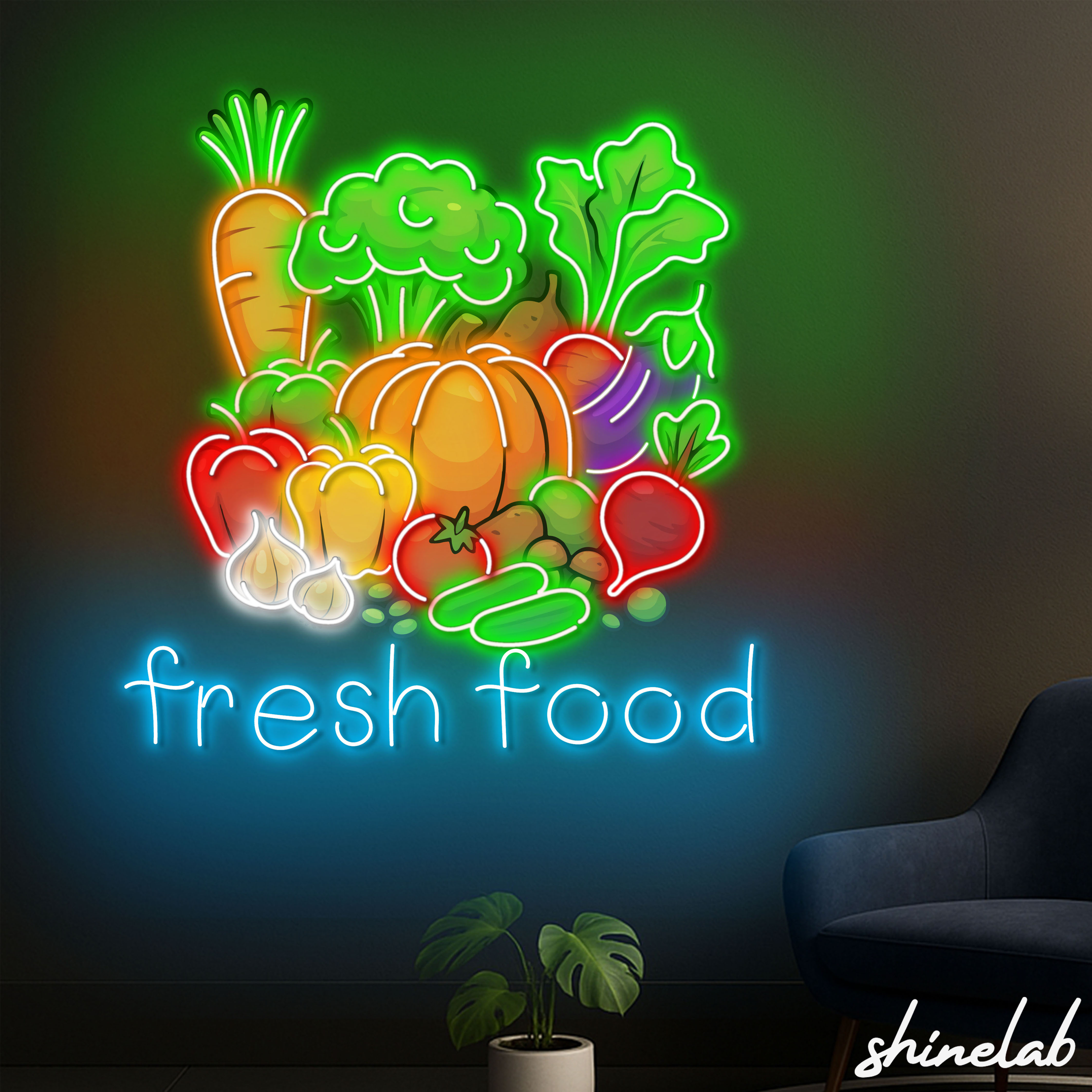 Shinelab Fresh Vegetables Neon Sign, Grocery Store Display, Healthy Kitchen Wall Decor