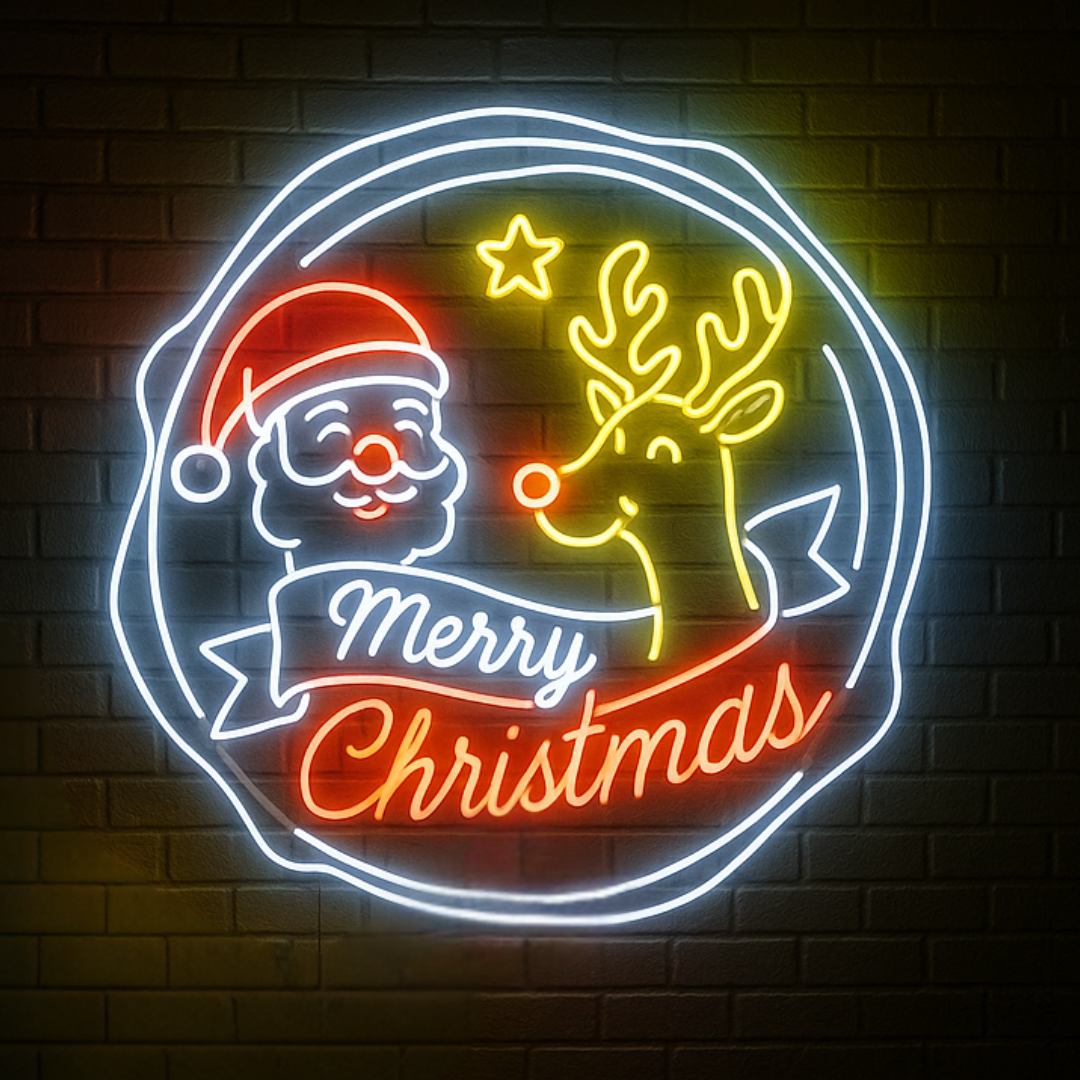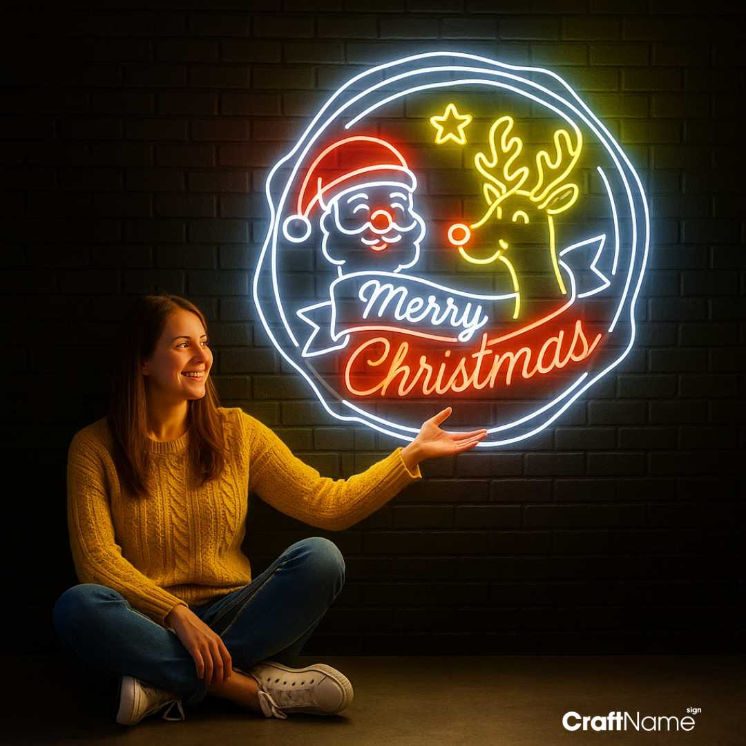 Santa and Moon Neon Sign, Christmas Crescent Moon Santa Led Sign, Christmas Holiday Wall Decor